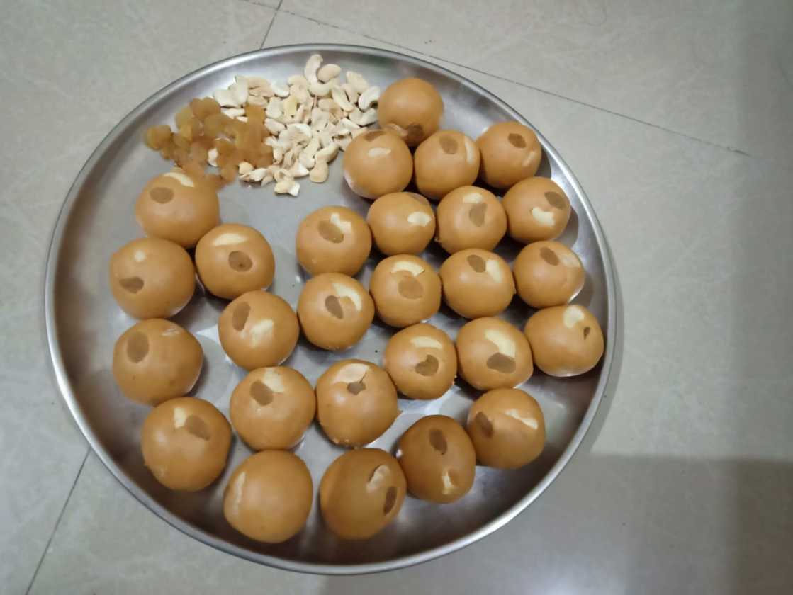 Ingredients: Gram flour, Pure ghee, Sugar, Cardamom powder, Rasains , Cashews.